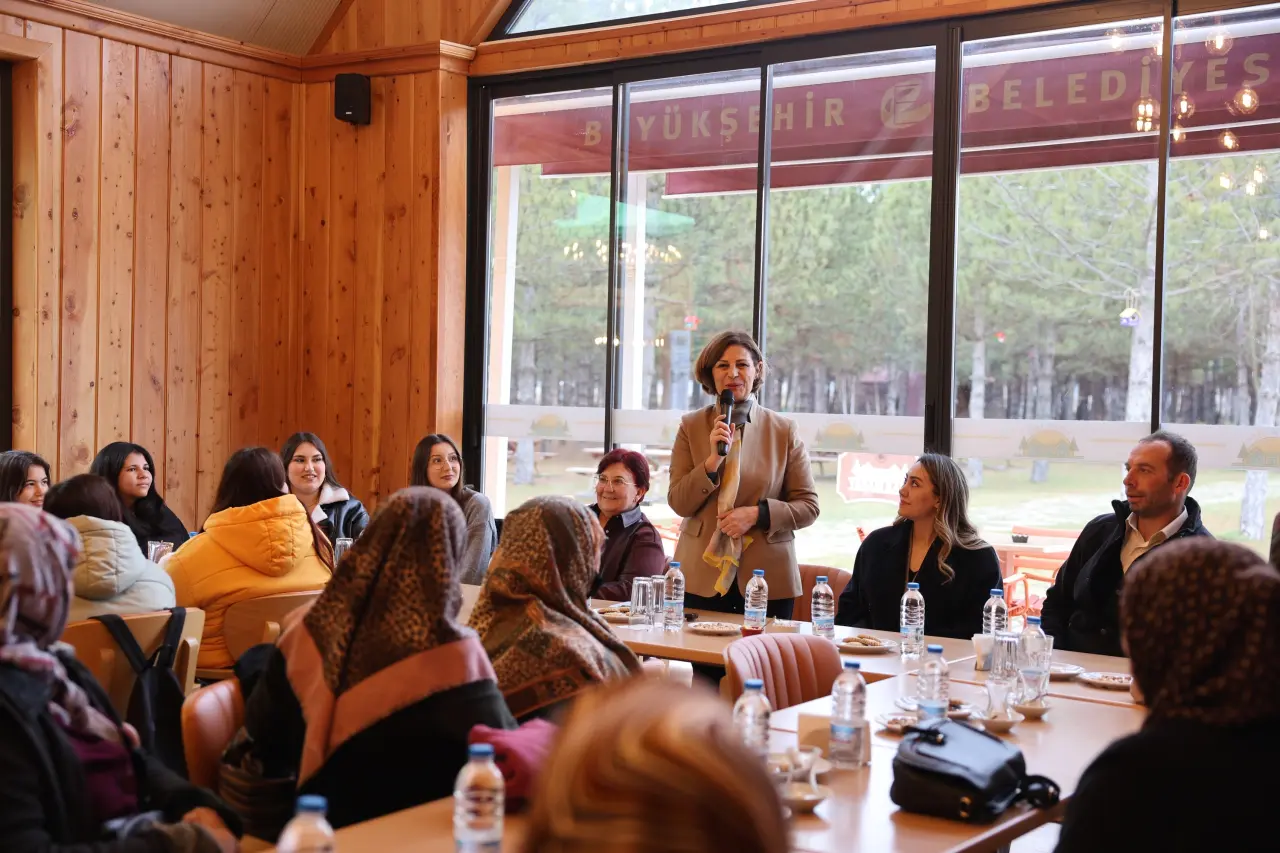 Buluşmada konuşan Başkan Ayşe Ünlüce, kırsalda yaşayan vatandaşların kent merkezini ve belediye çalışmalarını yakından görmesinin önemine dikkat çekerek, “Son Mahmudiye ziyaretimde sizlerle bir hayal kurmuş, Eskişehir’de bir araya gelelim demiştik. Sizlerle buluşmak, kırsalımızda yaşayan vatandaşlarımızın kent merkezimizi ve çalışmalarımızı yerinde görmeleri bizim için çok kıymetli. Bizlerden talepkâr olun, muhtarlarınıza iletin. İç içe olalım, beraber olalım. Kadınların yüzlerinin güldüğü bir şehir istiyoruz. Sizin yüzü gülerse bizlerin de güler.” ifadelerini kullandı.