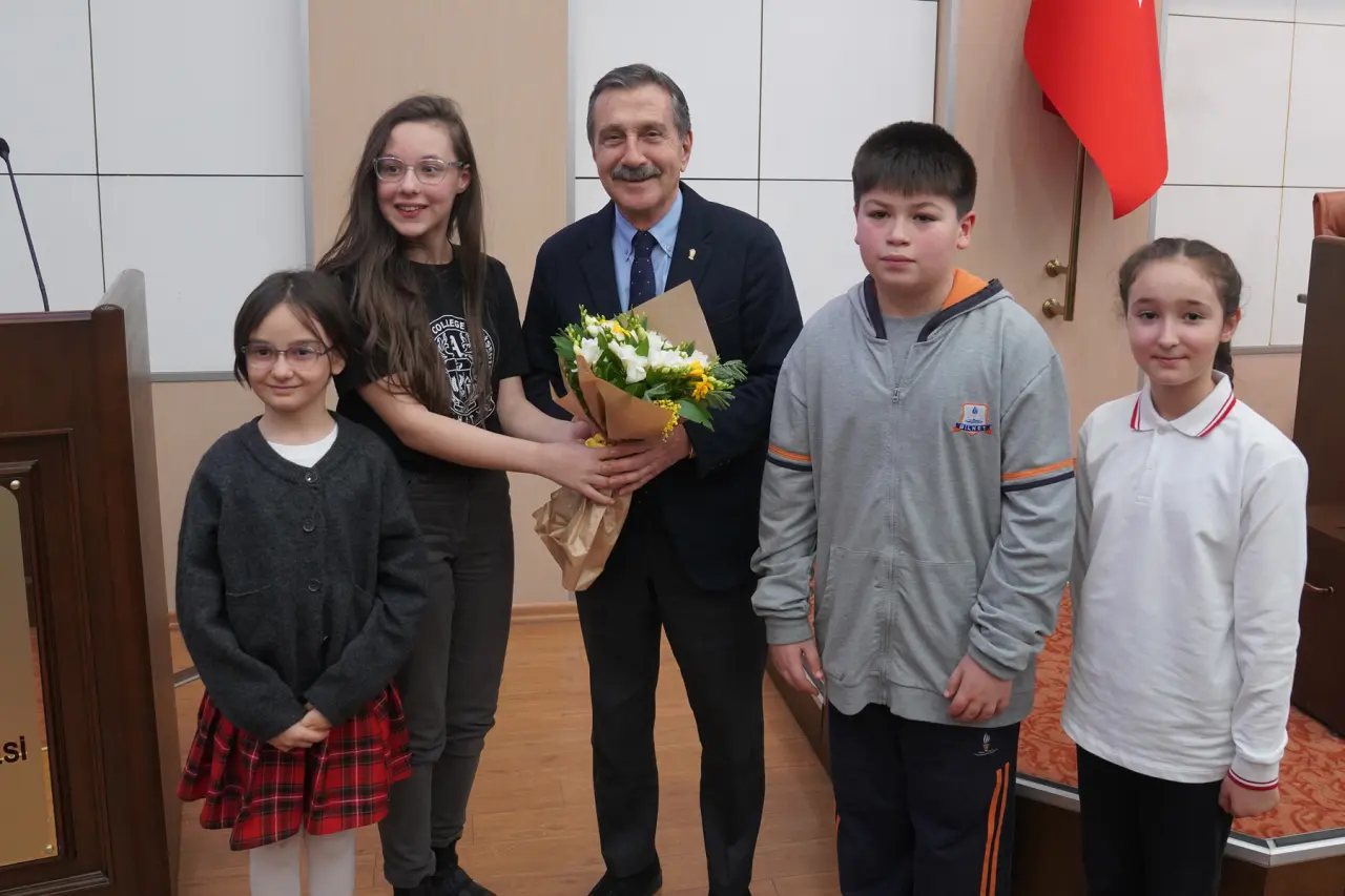Başkan Ataç’ın makamında gerçekleşen ziyarette Eko-Okullar İl Koordinatörü Nadir Erdem, 2025–2026 eğitim öğretim yılında Çevre Çocuk Meclisi’nin ana teması doğal afetler konusunda farkındalığın artırılması olarak belirlendiğini ifade etti. Erdem, İklim Değişikliği ve Sıfır Atık Müdürlüğü ile Tepebaşı Belediyesi Arama Kurtarma (TAK) Ekibi iş birliğinde, 16. dönem 2. ve 3. çalıştaylarda eğitimler ve atölye çalışmaları gerçekleştirileceklerini anlattı. Ardından Çevre Çocuk Meclisi Başkanı Nil Kökurgancı, başkan yardımcıları Mehmet Çağan Bilgin, Nisa Bilgin, katip üyeler Hira Elif Gündüz ve Bahar Ünal da meclisin işleyişi ile ilgili merak ettiklerini Başkan Ataç’a sorma imkanı buldu.